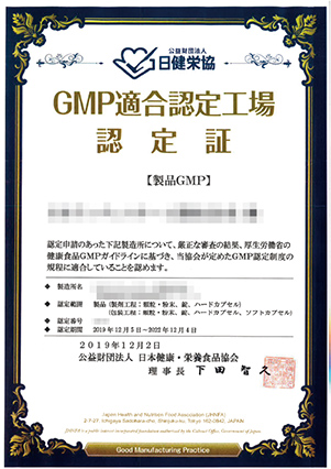 GMP:原料受入れから製造、出荷にいたる全行程において、「適切な製造及び品質管理である」と厚生労働省が認めた製造基準
