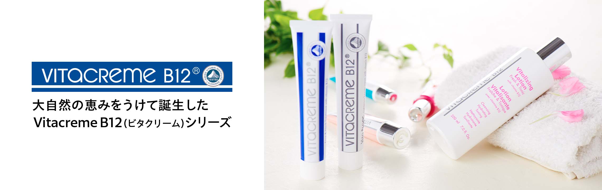 ビタクリームは、アルプス山脈の麓スイス・ローザンヌにある小さな製薬会社で、40年以上も前に産声を上げました。 ビタミンB12(シアノコバラミン:肌荒れ防止)を主成分に大自然の恵みミネラル豊かなアルプス氷河水を使用したピンク色のクリームは、誕生以来口コミだけで広がり続け、世界中で愛される製品になっています。